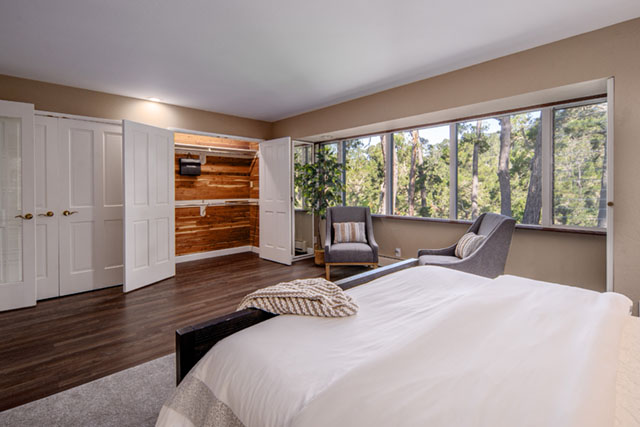 Beautifully updated and spacious, this Model C free-standing unit is thoughtfully designed with additional square footage beyond the standard floor plan. Nestled within Del Mesa Carmel, a premier 55+ community surrounded by a scenic forest landscape, this home offers both comfort and convenience. Enjoy a beautifully updated kitchen, complete with Wolf oven/range, remodeled baths with radiant heated floors, a versatile bonus room, perfect for an office or guest space, and a private gated patio ideal for outdoor relaxation. Gorgeous vista views of the forest provide feelings of tranquility and the utmost levels of privacy found throughout the development. An additional, huge finished cedar-lined attic provides excellent storage. Del Mesa Carmel offers 24/7 gated security, a heated pool, spa, gym, and lawn bowling, along with engaging social events. Meet friends and family for a great meal at Woody’s Restaurant, all just minutes from downtown Carmel.