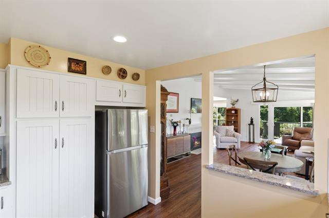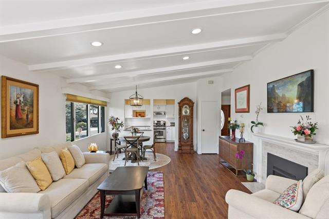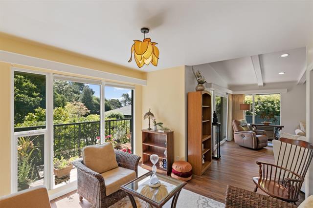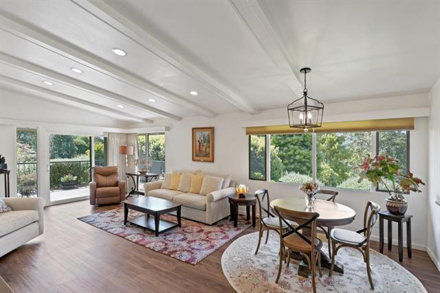 Gorgeous views and an abundance of light highlight this end unit in the desirable hilltop community of Del Mesa Carmel. Enjoy the treetop and valley vistas from the living areas or relax in front of the fireplace on the cooler coastal evenings. The recent updates to this B unit include a custom kitchen remodel with granite countertops, laminate oak flooring, recessed lighting, and paint throughout plus added storage in the attic. The new wrap-around deck is the perfect, private spot to enjoy your morning coffee, afternoon sunshine or entertaining guests. This move -in-ready unit is an easy walk to the Clubhouse, pool and Del Mesa amenities. Engage with the community in the newly renovated gym, upgraded Community garden, musical and educational presentations and Farmers Market! Make this your home and you will see why Del Mesa Carmel has been voted the #1 retirement community in our area. A list of upgrades available upon request.